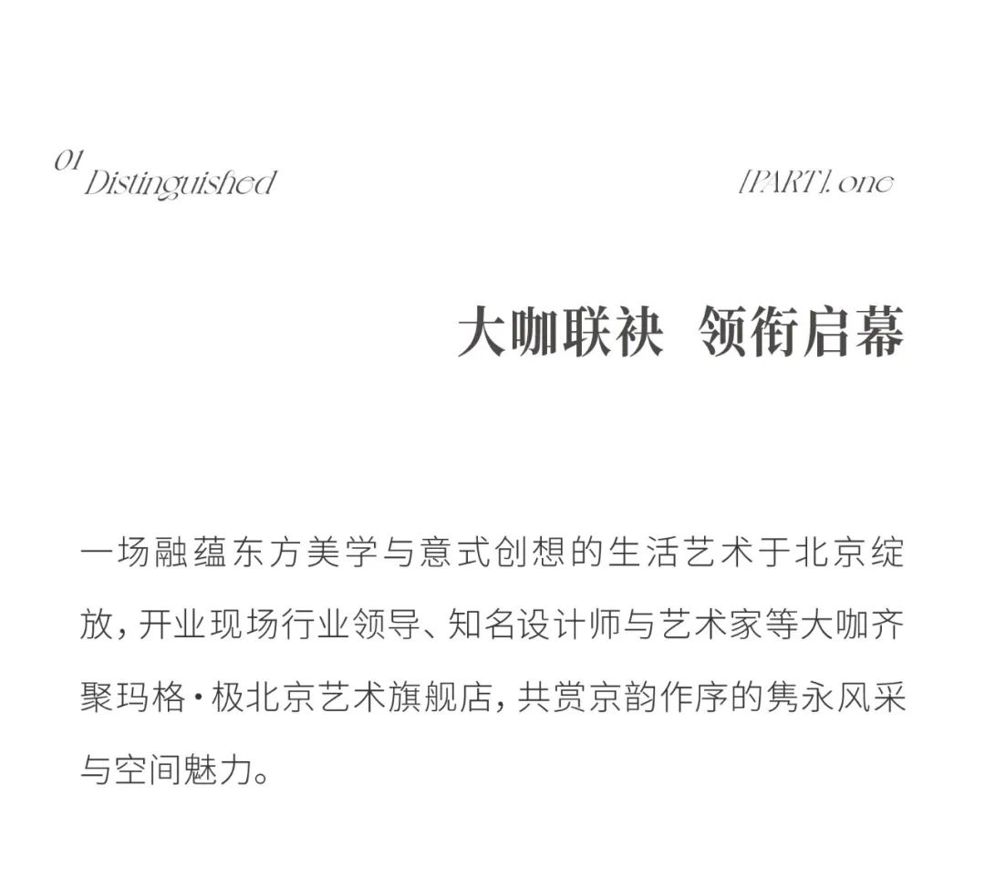 一場(chǎng)融蘊(yùn)東方美學(xué)與意式創(chuàng)想的生活藝術(shù)于北京綻放,開(kāi)業(yè)現(xiàn)場(chǎng)行業(yè)領(lǐng)導(dǎo)、知名設(shè)計(jì)師與藝術(shù)家等大咖齊聚瑪格·極北京藝術(shù)旗艦店,共賞京韻作序的雋永風(fēng)采與空間魅力。